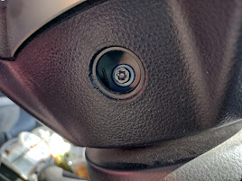 ハンドル下部の両サイドにあるいじりどめトルクスネジ(T30)を外してエアバックを外します。