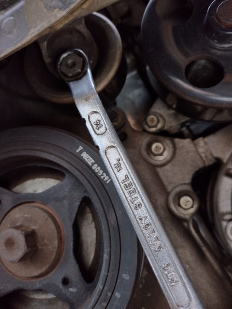 走り出す時にガラガラと音が鳴り出したのでオートテンショナーを交換しました。
