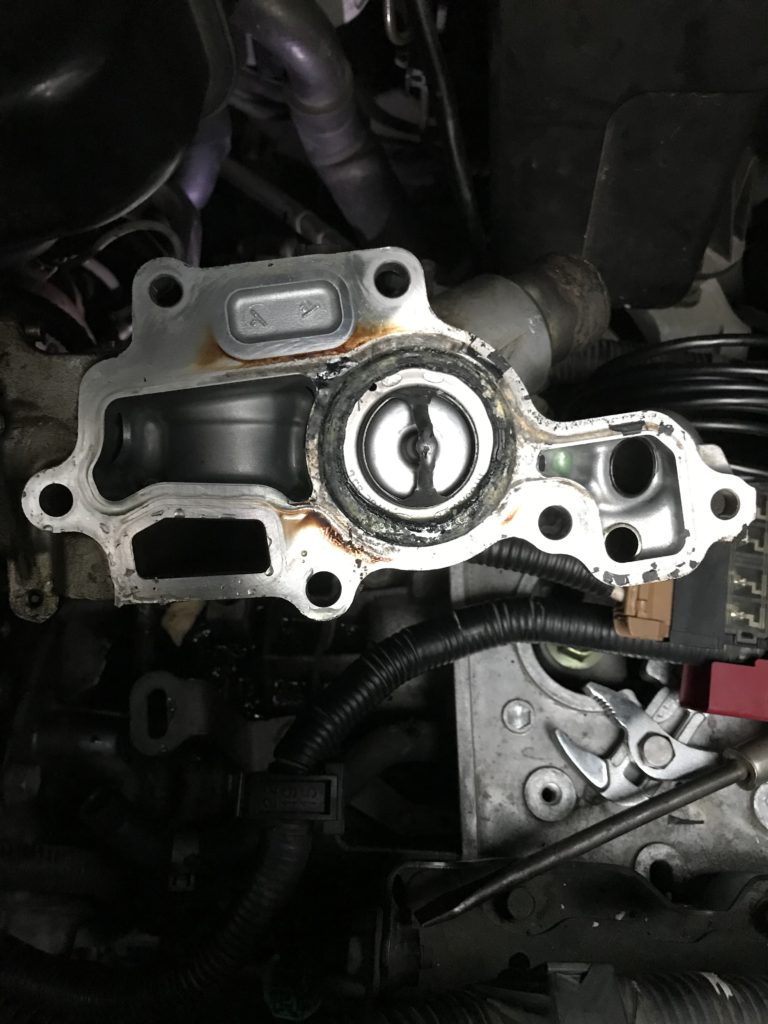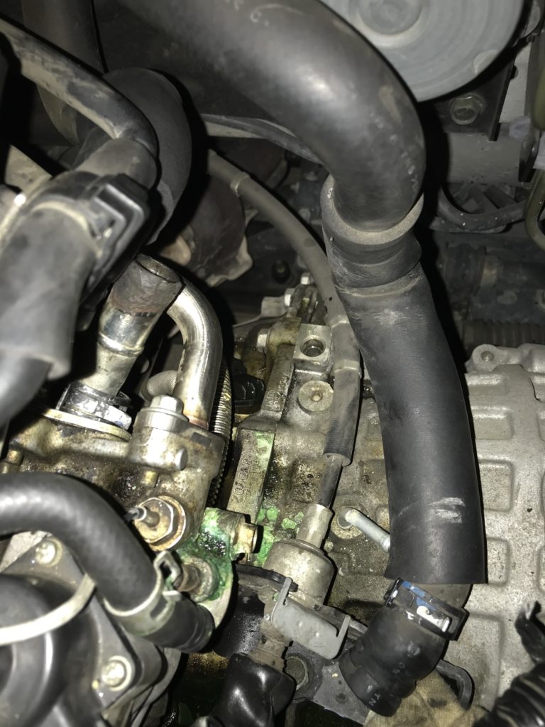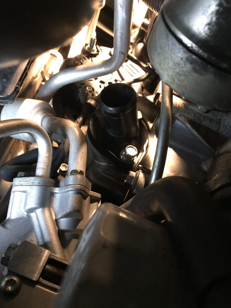 クーラントが抜けたら、シリンダ横(CVT側)にあるウォーターコントロールバルブという物から交換していきます。