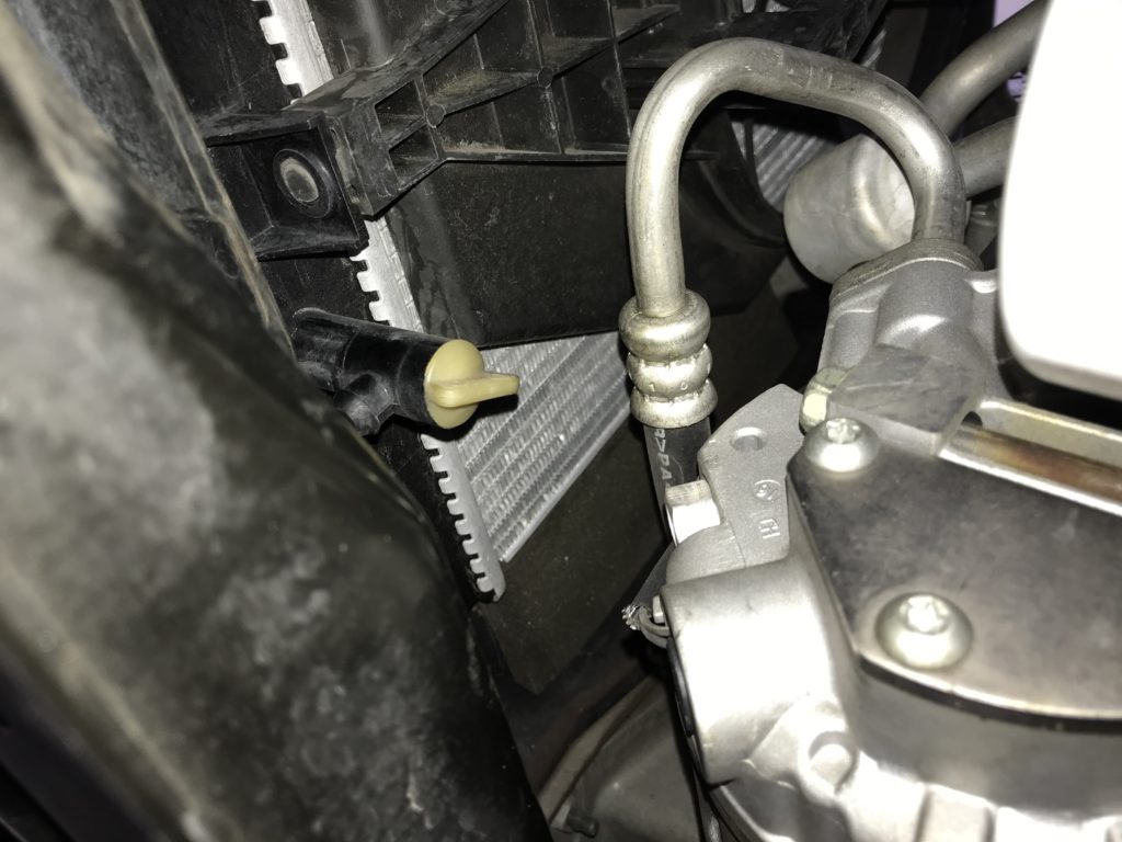 ラジエターキャップを外して、ラジエター下部にあるドレンプラグを緩めてクーラントを排出します。